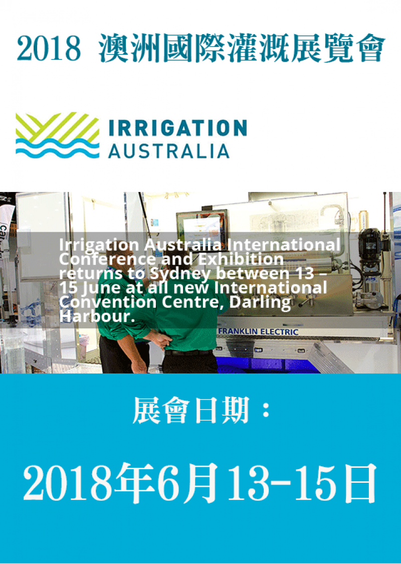 | ● 澳洲國際灌溉雙年展覽會是澳洲地區唯一的專業農業及園藝灌溉技術設備展覽會,也是南半球最大的灌溉事件,更是世界三大灌溉展之一,兩年一次在澳洲各大城市輪流舉辦,是與各地灌溉行業專業人士進行網絡的絕佳機會。 ● 2018展會將在全新的地點雪梨舉辦,匯集農村和城市灌溉業的供應商、設備製造商、研究人員、供水機構、顧問、政府官員和政策制定者等。 ● 同期舉辦相關的研討會、交流培訓以及新技術新設備的現場演示,為貿易參觀者和會議代表提供機會,了解行業最新產品、服務和技術。 |