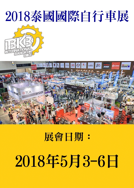 ● 泰國最大自行車展 每年5月及11月舉行,是泰國自行車業第一個大宗旨推廣自行車在休閒與日常生活之運用,以及推廣國內外遊客自行車旅遊的展覽會,也是打開東協自行車商機之大門。