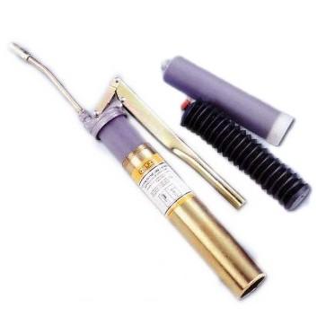 Open the handle on the top of the grease gun, apply the grease tube to the grease hole and twist it on tightly.
