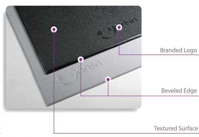 Embossed logo on the top surface & Beveled edge around the mat