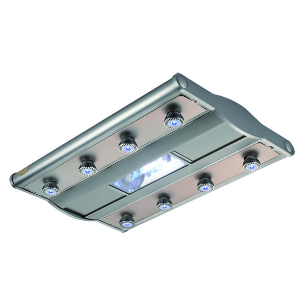 3) HQI main illumination (blue light, 10000k) +8B-LED (blue light, 20000k)x8 Lantern set- The main blue illumination is suitable for marine aquarium feeding anemone, coral software, symbiotic algae, it could raise the vivacious effect. The 8B-LED mixed lighting makes the fantastic beauty atmosphere; If just keeping the 8B-LED blue lighting at night, the blue illumination of powerful AC-LED would demonstrate dream atmosphere of purple-blue color and it’s unrivaled by other lanterns.