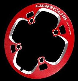 DORCUS Chainwheel cover alloy CNC BCD 104 for 44T Red anodized w/DORCUS logo