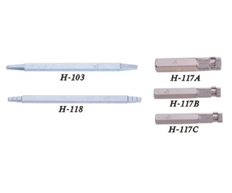 Nipple Extractor:H-103 Square tapered faucet seat(3/8”)(1/4”-11/32”)H-117 A/B/C Nipple extractor(3/4”,1/2”, 3/8”)H-118 Square 6-step faucet seat wrench(1/4”,9/32”,5/16”)