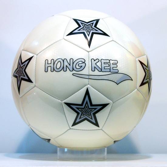 This is a white coloured football decorated with stars and has a shinny appearance. The football is made of elastic PVC which provides great tensile strength and durability.