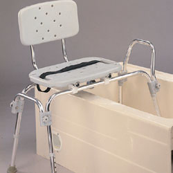 Backrest is adjustable for right or left facing tubLocking mechanism for stability during transfer