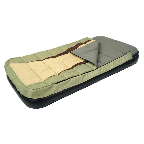 - Sleeping bag zips on the air bed, so it cannot slip off