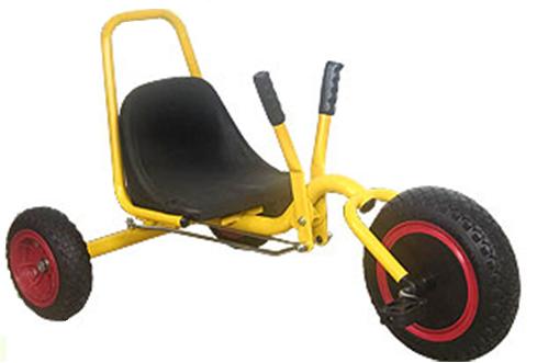 The hand push trike is steered by grip handles.