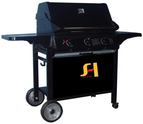 GrillMain material:【steel、stainless steel、aluminum】 Powder coated or stainless steel grill body、 stainless steel hood、cast aluminum sides of hood、Powder coated or stainless steel cabinet trolley