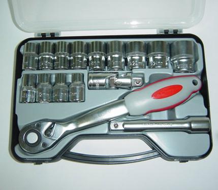 17pcs content to cover 13pcs 1/2” socket wrench, UJ, extention bar and ratchet handle. Good for DIY. Plastic box with transparent cover.