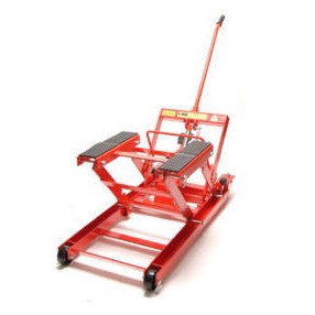ATV / Motorcycle Lift 1000 LBS.- Product Specification : Capacity:1000 LBS Min. ~ Max. Height: 150~635mm N.W./G.W.: 33/34kgs Q’TY of 20’FT Container: 530pcs Note : 1. Perfect for cleaning, servicing motorcycles and ATV’s. 2. Low profile design. 3. All position anti-fall lock design. 4. Removable tow handle. 5. Swivel wheels for easy positioning. 6. Heavy steel construction for maximum durability. 7. Dual return springs retract ram