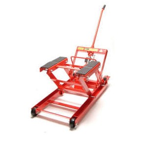 ATV / Motorcycle Lift 1500 LBS.- Product Specification : Capacity: 1500 LBS Min. ~ Max. Height: 130~450mm N.W./G.W.: 38/40kgs Q’TY of 20’FT Container: 450pcs Note : 1. Perfect for cleaning, servicing motorcycles and ATV’s. 2. Low profile design. 3. All position anti-fall lock design. 4. Removable tow handle. 5. Swivel wheels for easy positioning. 6. Heavy steel construction for maximum durability. 7. Dual return springs retract ram