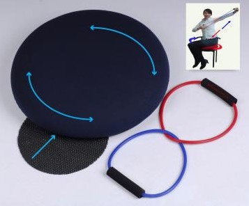 Changes to work and living habits mean we spend more and more time in a sitting position. If posture is incorrect this can cause deterioration in pelvic shape and structure and an increase in fatty tissue in the outer thigh region. The pelvis is the center of the body’s joint structure; it is in fact the largest joint and the easiest to suffer injury. The pelvis has no muscle component to control movement because the muscles that are attached to it primarily control the spine and thighs. Thus any damage to the pelvic joint will also have an effect on muscular function of the spine and the thighs. Actually the majority of lower back and spinal pain comes from problems within the pelvis. Pelvic injury is very common and pregnancy, over-weight, bad habits, lack of exercise, collision, falling over, sports injuries (especially golf), and bad sitting habits (crossing legs) can all cause changes to the shape of the pelvis. With our unique Healthcare Slim Rotary Cushion you only need to sit down to correct pelvic problems and improve body shape in the lower abdomen. It can be used at home a few times a day to improve pelvic shape. The central hole in the cushion helps disperse body weight thus relieving stress on the pelvis and adjusting the body shape in a natural manner. Regular use at home can be as effective as physiotherapy or acupuncture. The pelvic area of women will commonly broaden over time. However by using the Rotary Cushion in combination with body weight a reverse effect can be seen as shown by the arrows in the picture above. No matter if you are working, eating or relaxing if you are using the Slim Rotary Cushion you can help fight “middle age spread” without even leaving your chair! *Cushion detaches from base for ease of cleaning *Maximum load of 120 kgs * Cushion diameter 43 cm *Patented in Japan, Taiwan, USA, UK, Germany, Korea, China