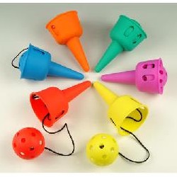 TRADITIONAL BALL TOSSING GAME WITH NEW TWIST. SAME DIVERSIFY TRICKS, WITH SOFT BALL FOR BETTER SAFETY. SUITABLE FOR CHILDREN TRAINING ON HAND EYE COORDINATION. SOFT PLASTIC BALL x 1PC PLASTIC CONE x 1PC STRINGS x 1PC AVALIABLE IN RED, YELLOW, PURPLE, GREEN, ORANGE AND BLUE