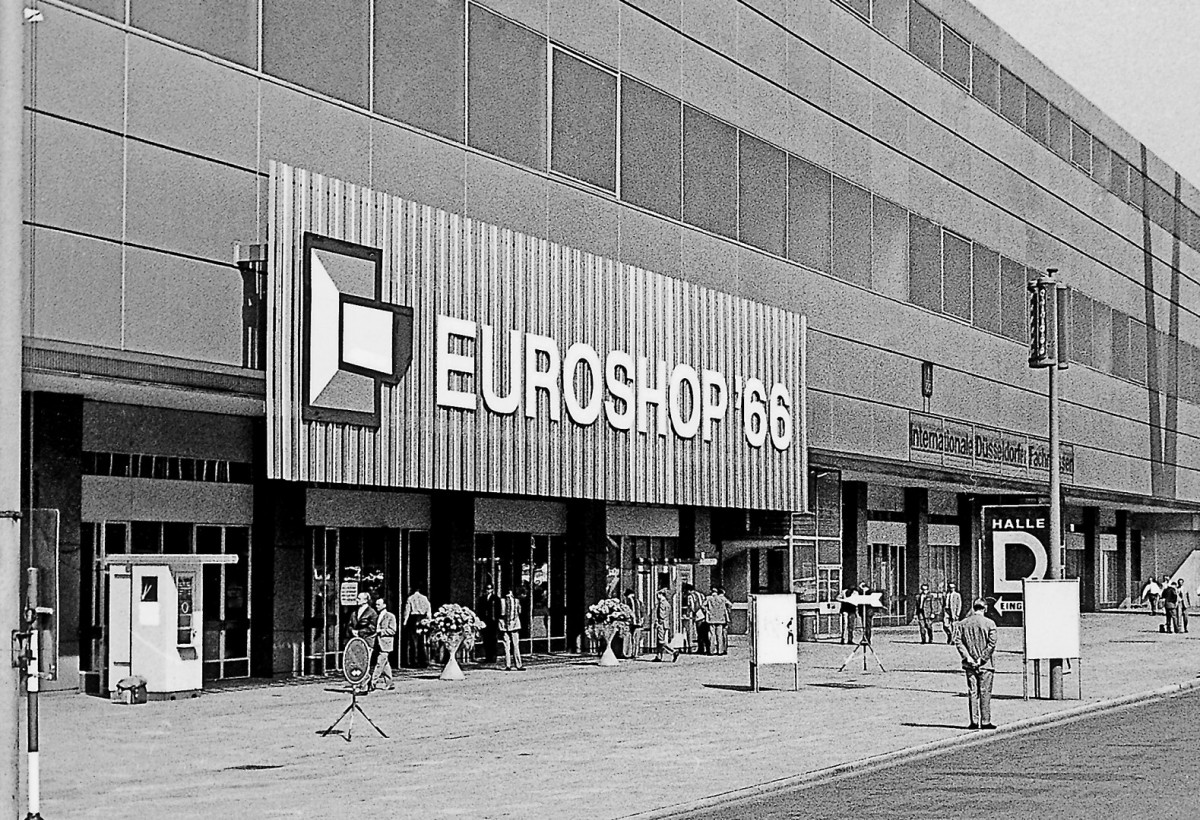 首屆展會於 1966 年 6 月 11 至 15 日舉行,來自 11 個國家、約 330 家的參展商,在 17,193 平方公尺的淨展覽空間內,向超過 30,000 名參展者展出產品。展覽內容主要包括店鋪裝潢、店內設備、冷藏展示櫃、收銀機及展示廣告物料。當時熱門議題包括「現代藥妝店」、「現代紡織品銷售」以及「冷凍食品作為未來產品」。初期,零售業對這場新展會抱持懷疑態度,但到了 1968 年第二屆 EuroShop 時,媒體已將其稱為「具有全球影響力」。至今,EuroShop 仍視自身為零售業重大轉型的縮影。